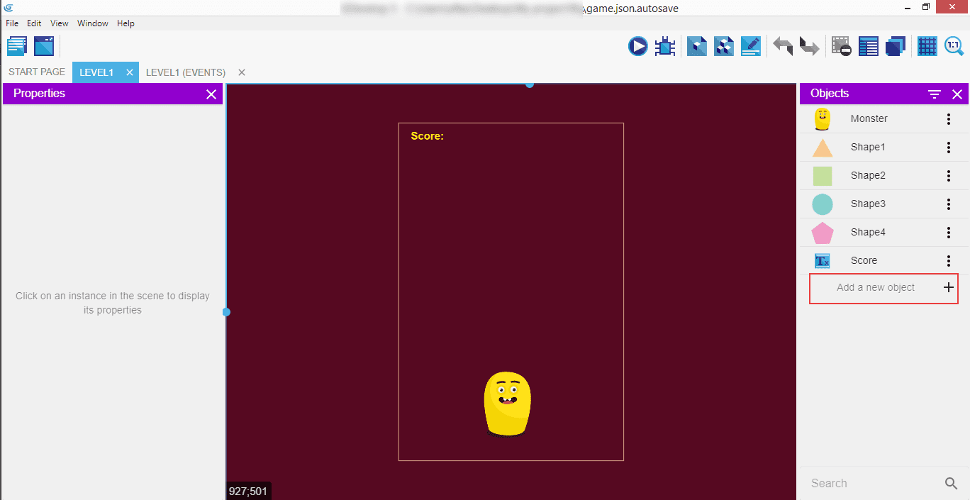 Click to "Add a new object"...